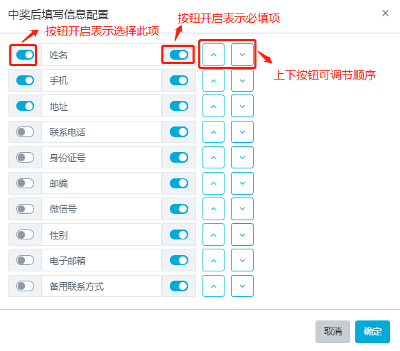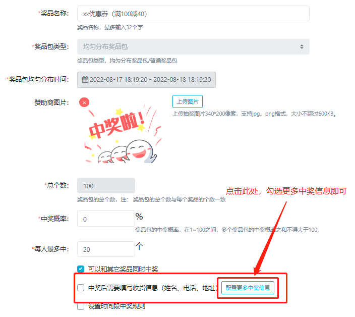 当您设置的奖品需要收集中奖者信息时,需要设置中奖信息填写。
