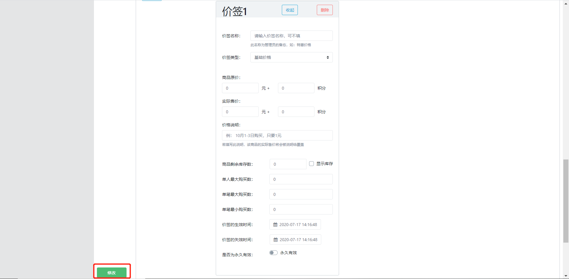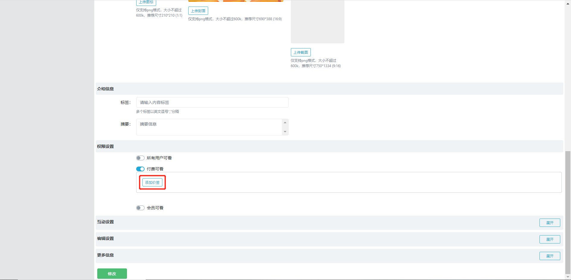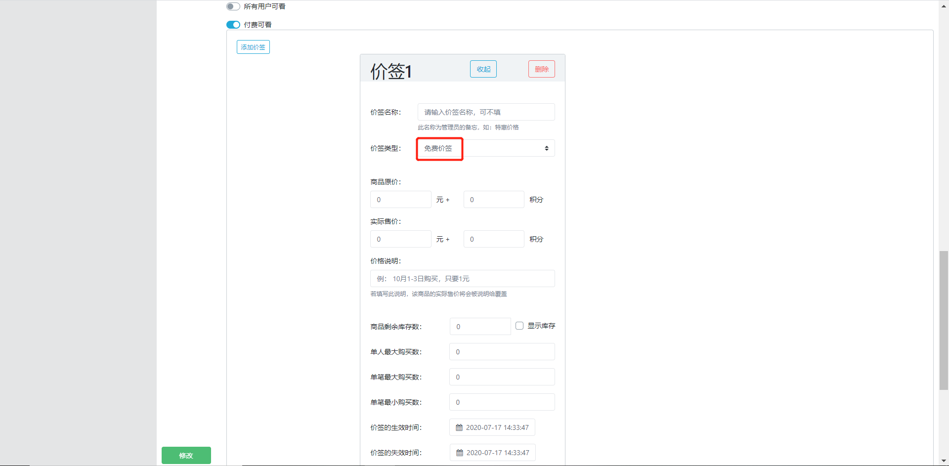 点击【添加价签】进行设置,设置完成点击【修改】就可以实现付费观看啦!