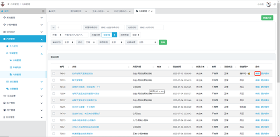 本操作说明仅针对本公司小程序平台中“小程序内容管理”部分进行说明。