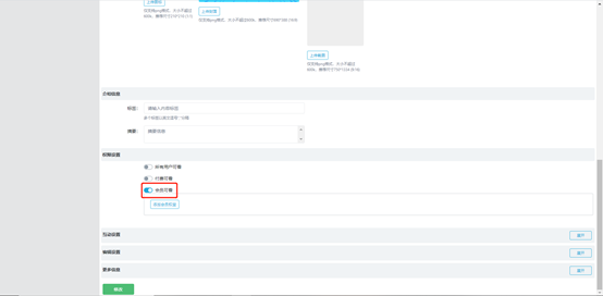 只需在某些你想设置成免费观看的内容下的【权限设置】中开启【付费可看】,【价签类型】选择“免费价签”,其他设置不用更改,就可以实现。