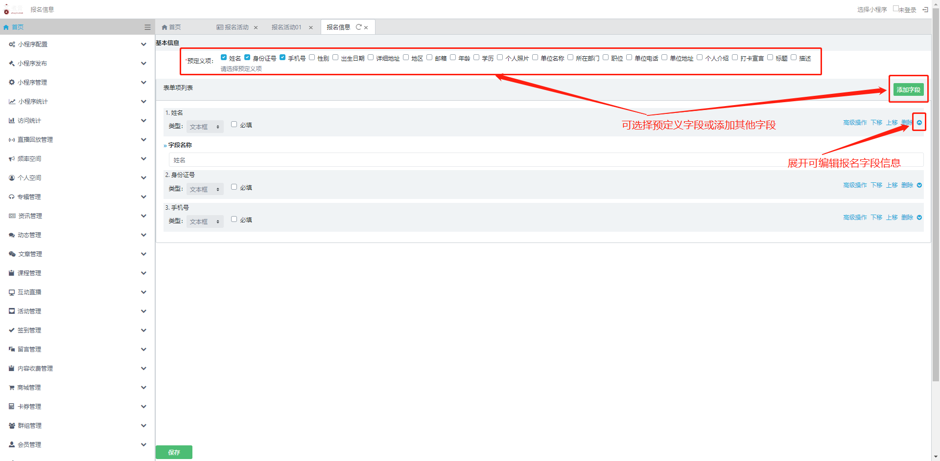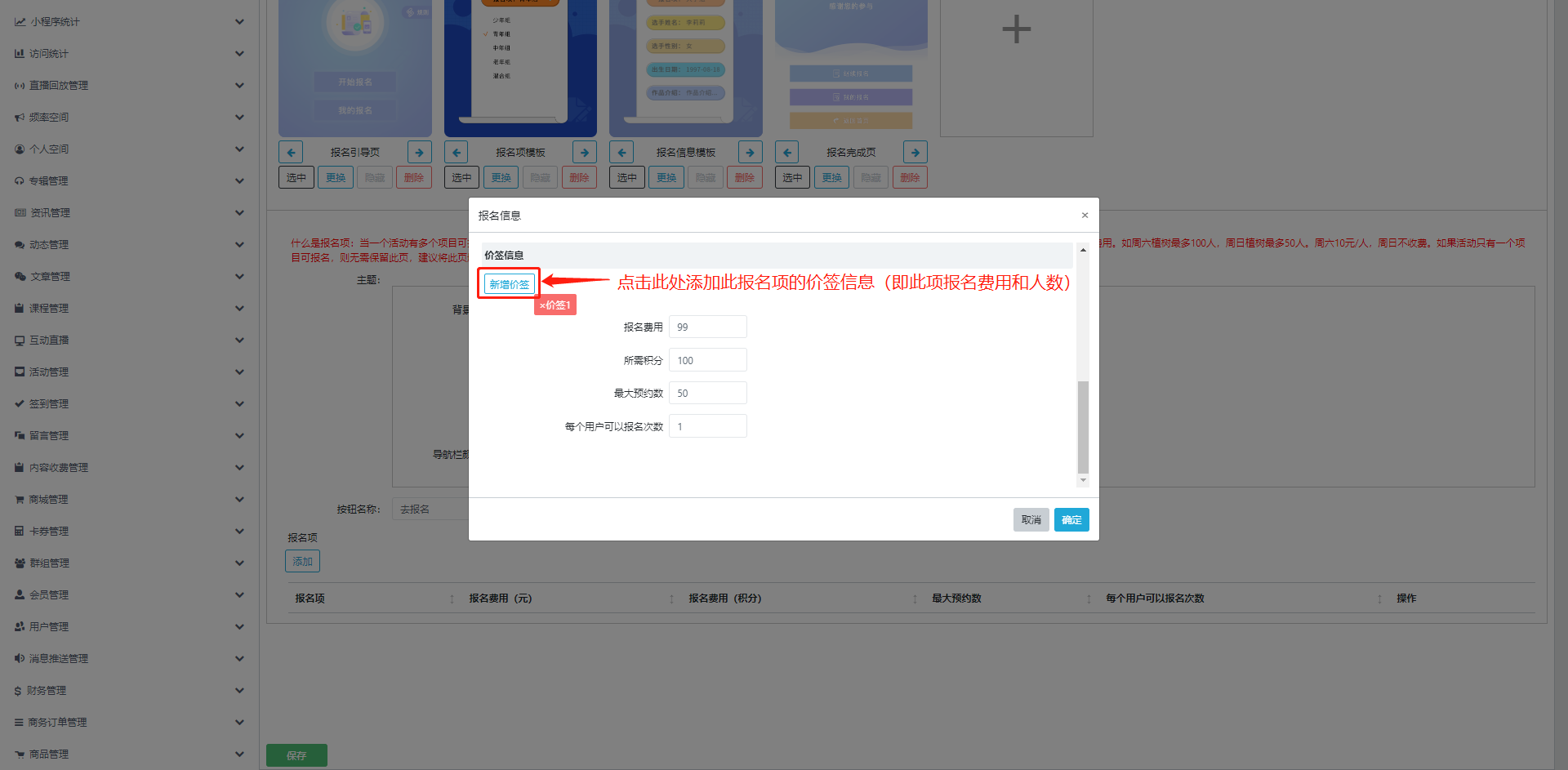 2.具体到当前管理的小程序如何应用报名活动,请参考该小程序具体说明,或咨询管理员。