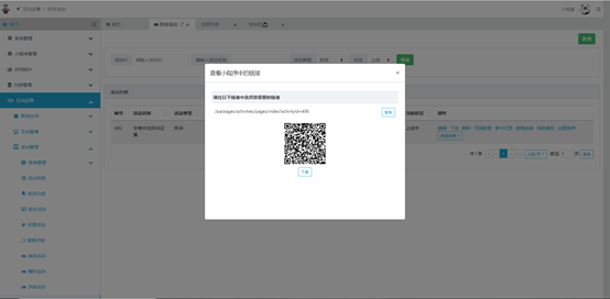 4.查看链接:在活动列表页点击操作栏中的【查看链接】即可查看此活动的链接地址信息。