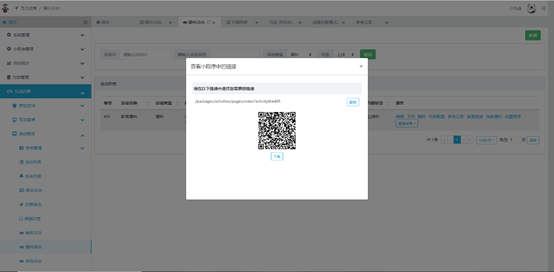 4.查看链接:在活动列表页点击操作栏中的【查看链接】即可查看此活动的链接地址信息。