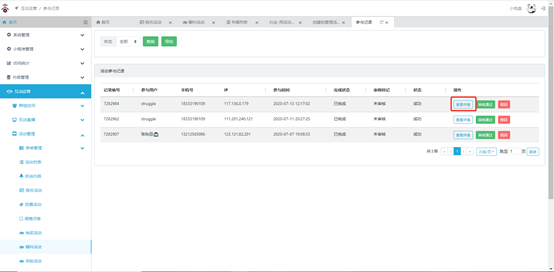 点击列表右侧【查看详情】即可查看参与记录详细信息。