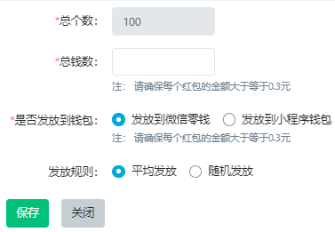 B、配置好总个数和总钱数即可。配置界面如下图所示。